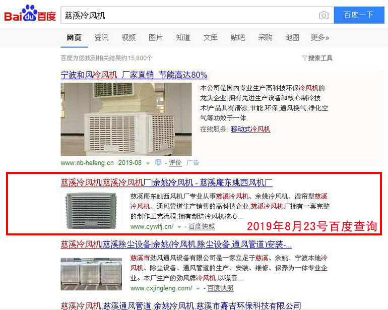 慈溪冷風(fēng)機 百度(PC)自然排名第1名