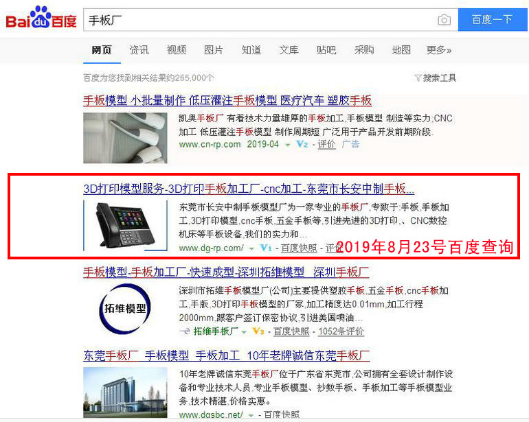 東莞手板廠 : 2019-02-28上線    2019-03-05百度第18名    2019-03-19百度第8名    2019-03-25百度第2名(排名第1名的網(wǎng)站www.dgsbc.net也是我公司管理優(yōu)化的網(wǎng)站)