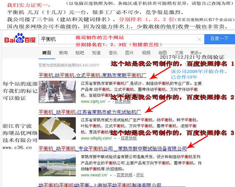 平衡機 (三個字,排名比較難) 我公司接了三個站(建站和關(guān)鍵詞排名),百度快照分別排名1、2 、3名 (360搜索等其它搜索引擎也排名挺好)...